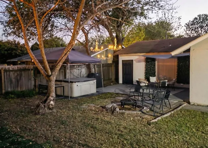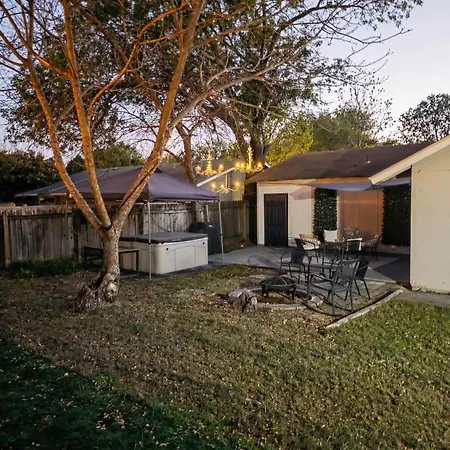 **Welcome to Prime Austin - Jacuzzi Firepit and BBQ, where modern luxury meets outdoor charm. Nestled just 12 km from the iconic Zilker Zephyr Miniature Train, this unique villa offers a perfect escape for both relaxation and adventure. With Austin-Bergstrom International Airport only 15 km away, guests can seamlessly transition from travel to tranquility.**